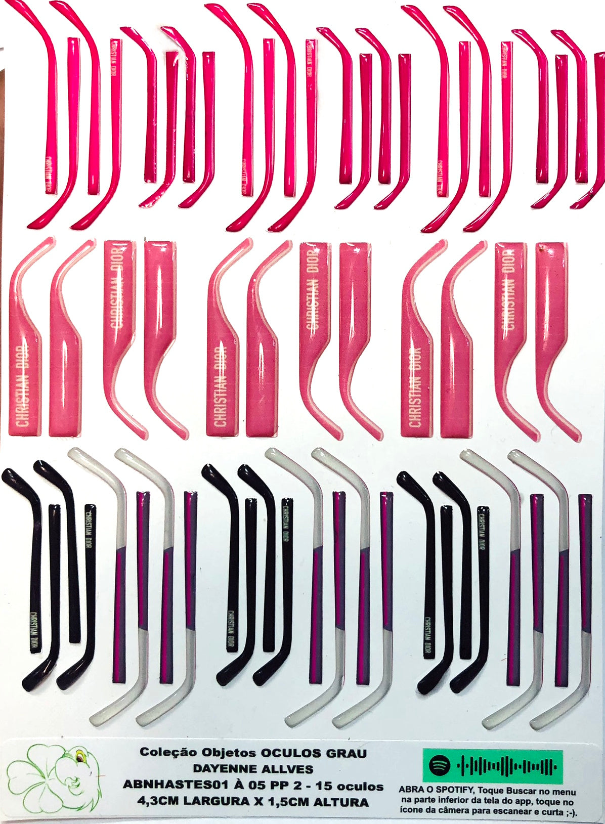AS CARTELAS DE HASTES TEM A QUANTIDADE EXATA PARA OS TAMANHOS E PARES DOS ÓCULOS ACIMA.