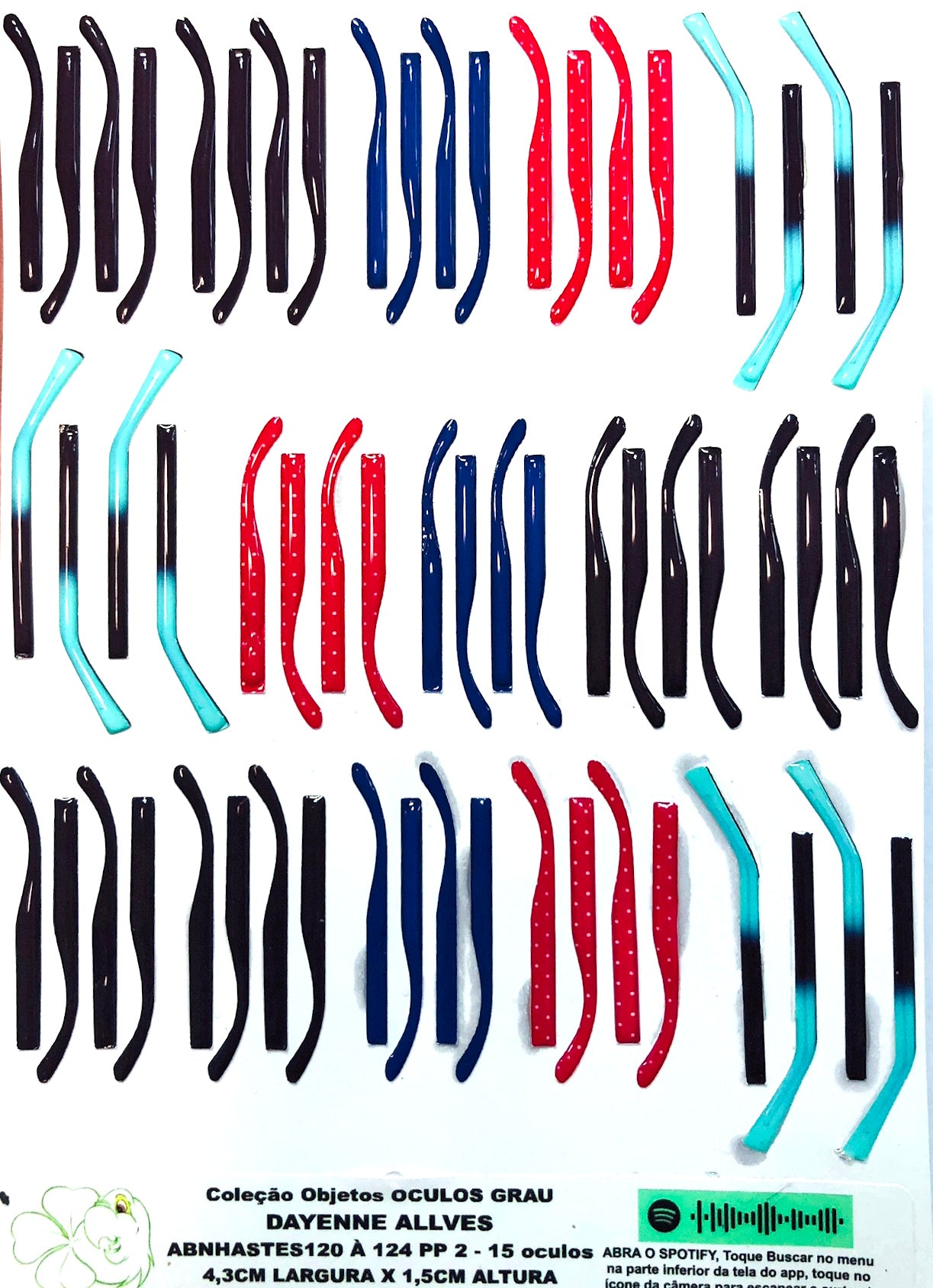 AS CARTELAS DE HASTES TEM A QUANTIDADE EXATA PARA OS TAMANHOS E PARES DOS ÓCULOS ACIMA.