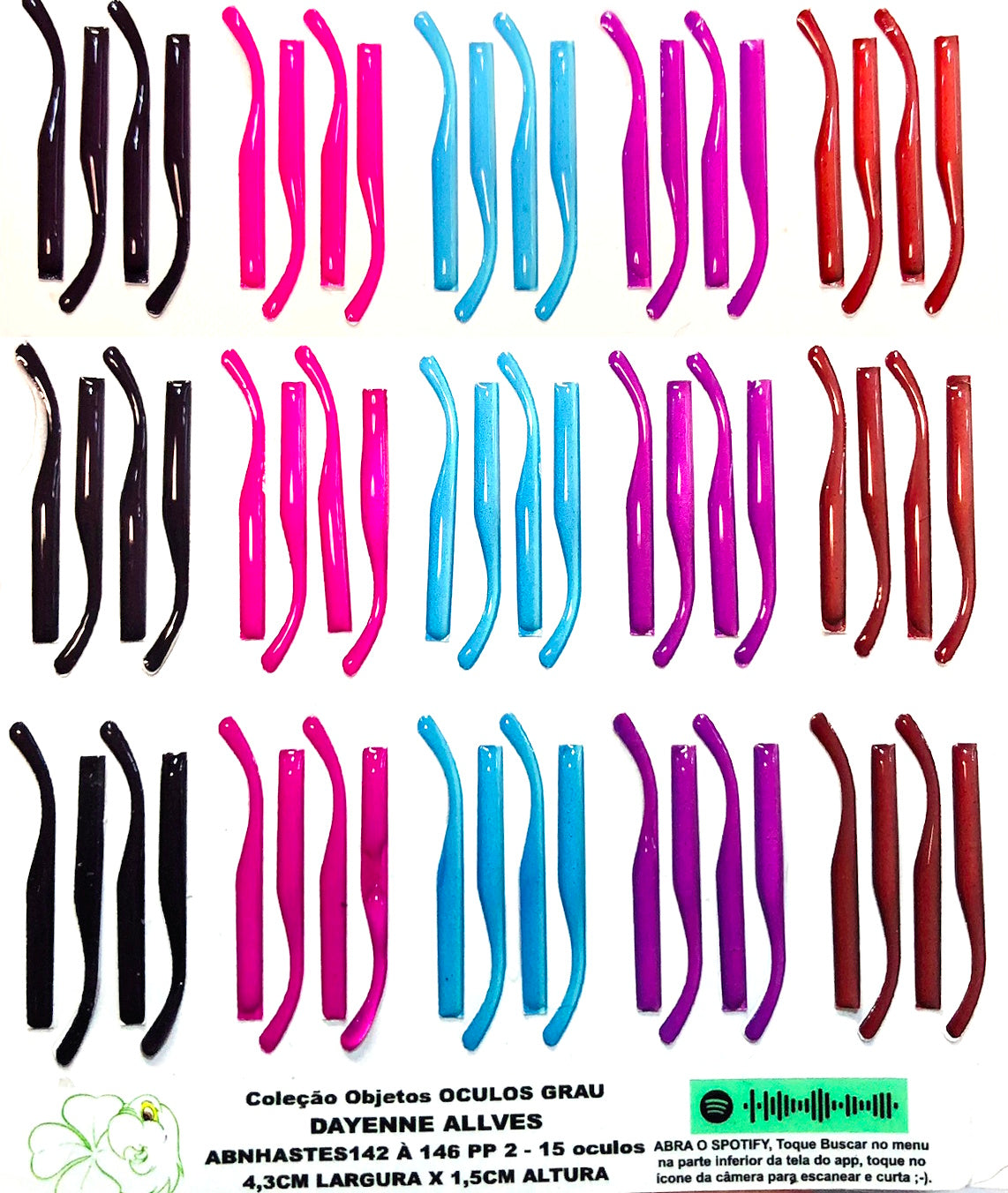 AS CARTELAS DE HASTES TEM A QUANTIDADE EXATA PARA OS TAMANHOS E PARES DOS ÓCULOS ACIMA.