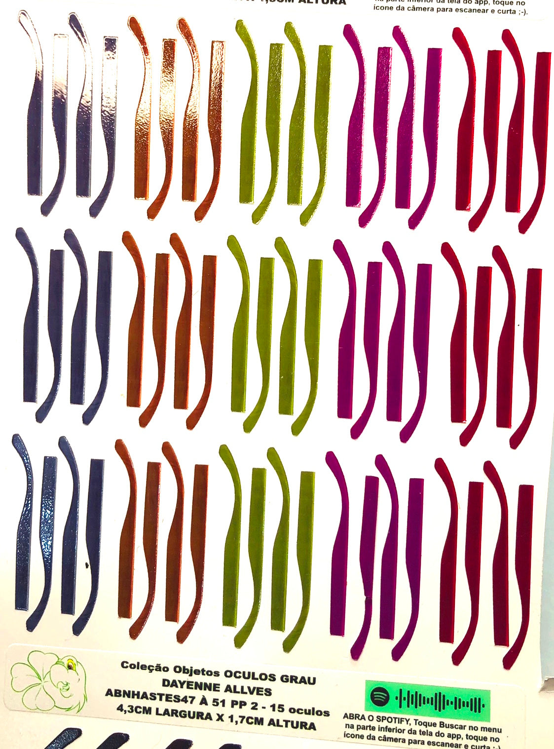 AS CARTELAS DE HASTES TEM A QUANTIDADE EXATA PARA OS TAMANHOS E PARES DOS ÓCULOS ACIMA.