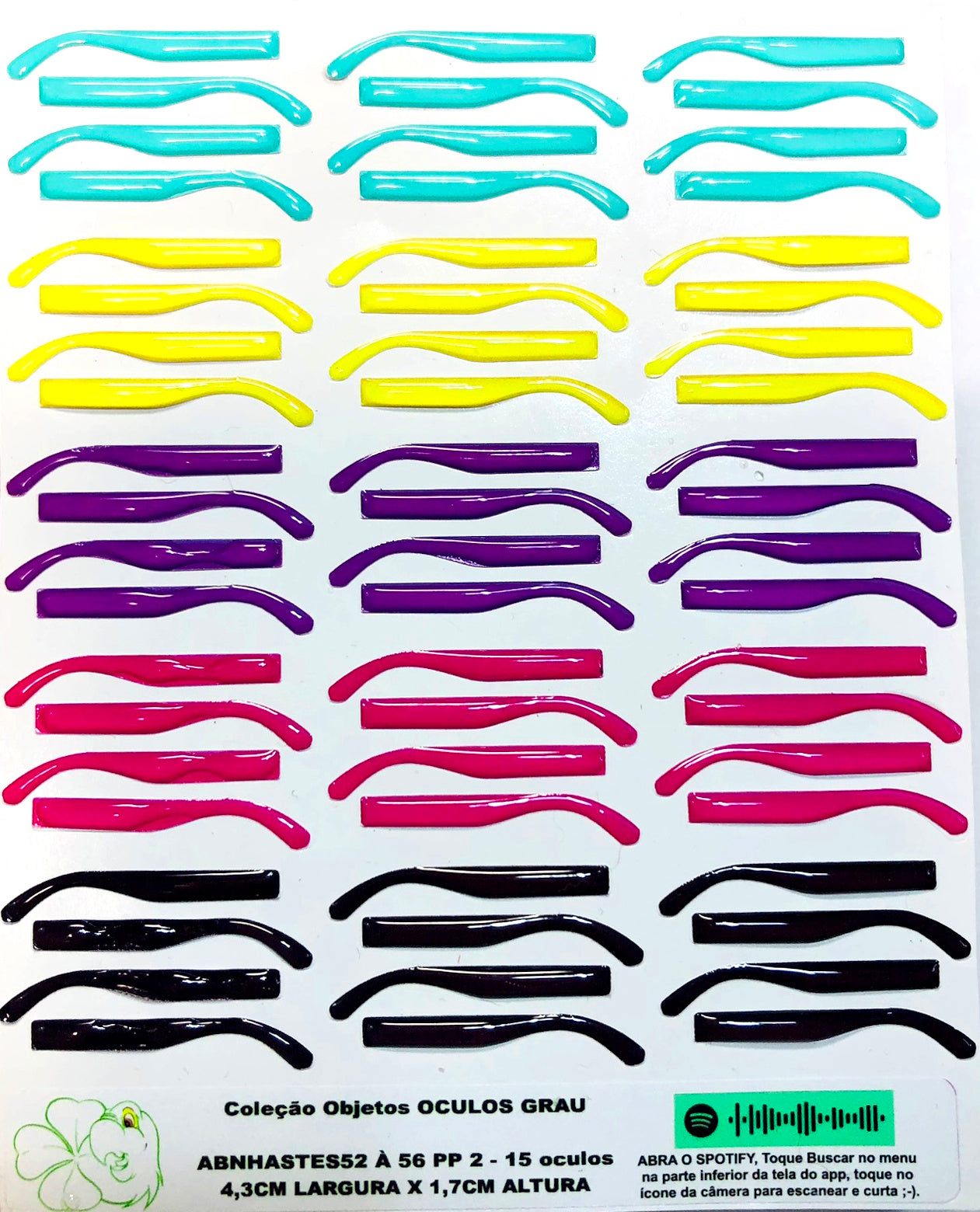 AS CARTELAS DE HASTES TEM A QUANTIDADE EXATA PARA OS TAMANHOS E PARES DOS ÓCULOS ACIMA.