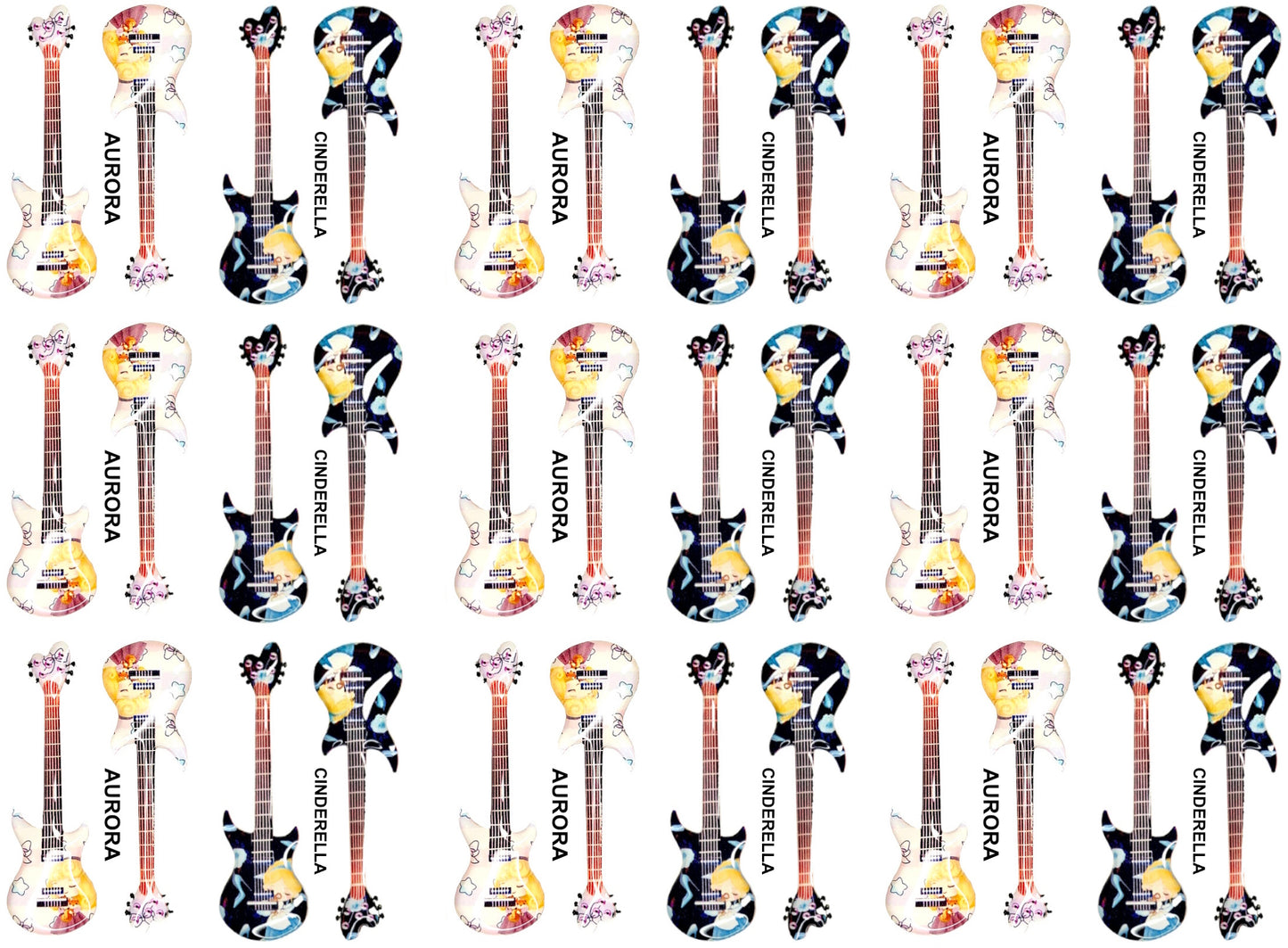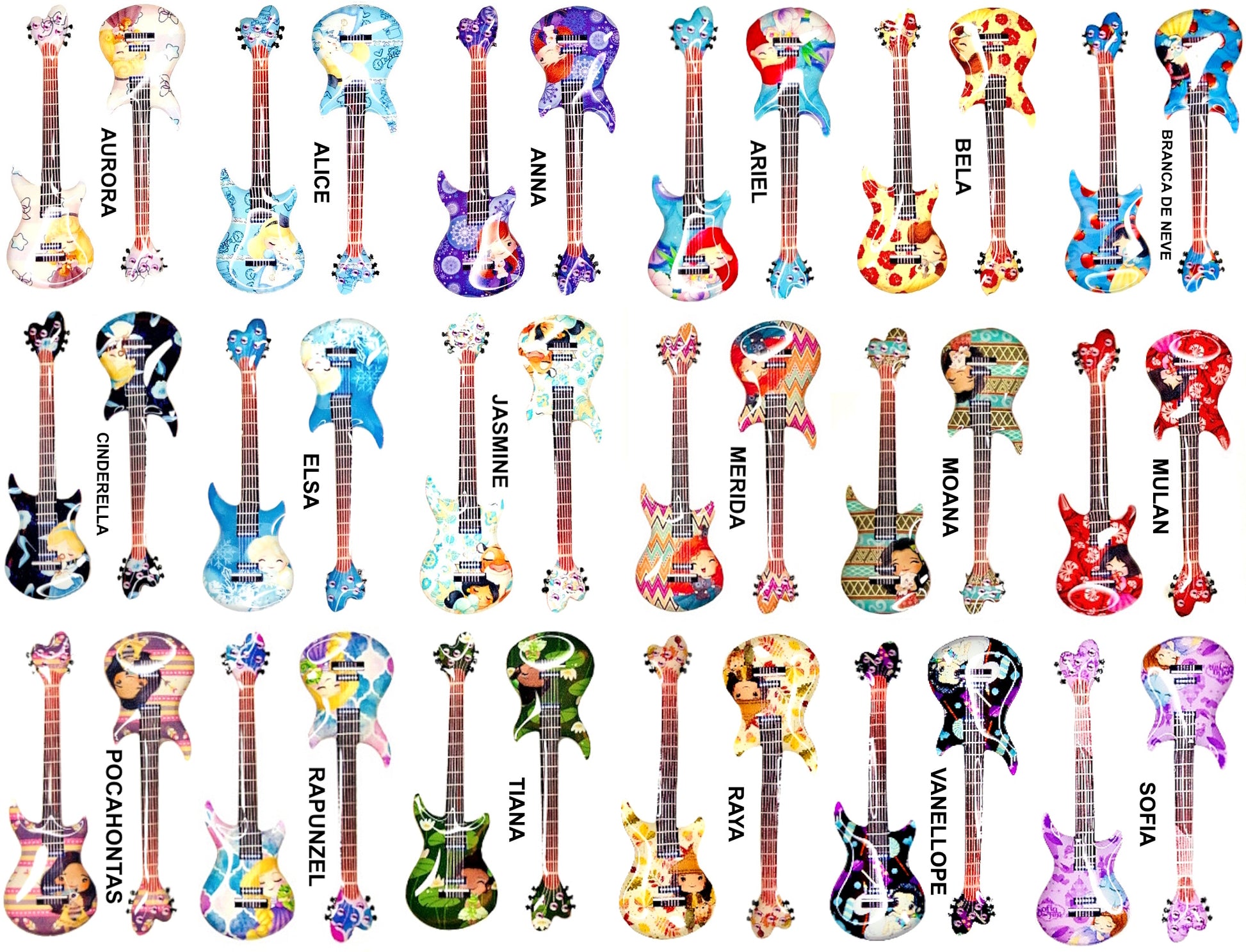 SÃO 18 MODELOS DE GUITARRAS DE PRINCESAS, 1 MODELO PARA CADA PRINCESA.