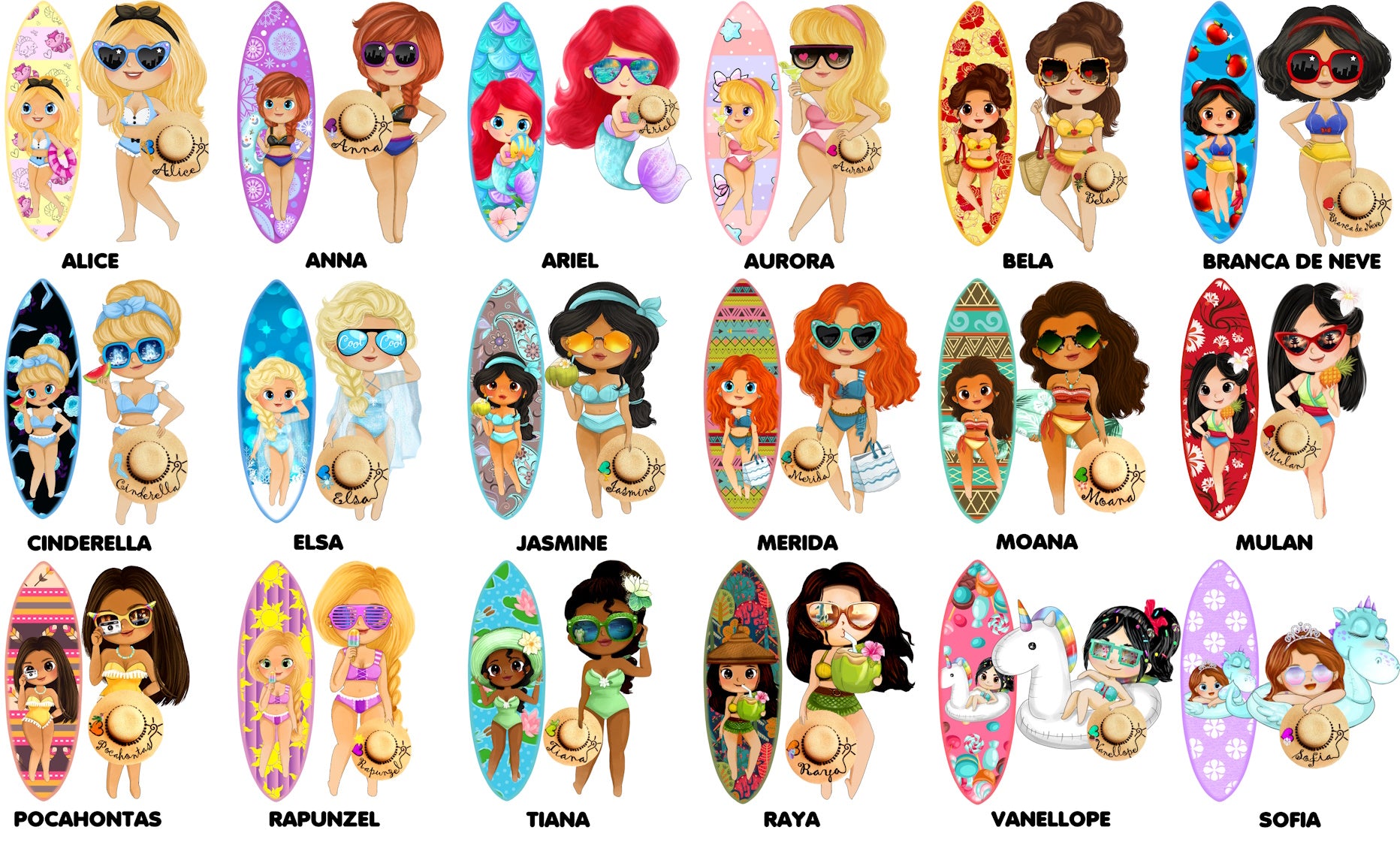 SÃO 18 MODELOS DE PRANCHAS DE PRINCESAS, 1 MODELO PARA CADA PRINCESA.