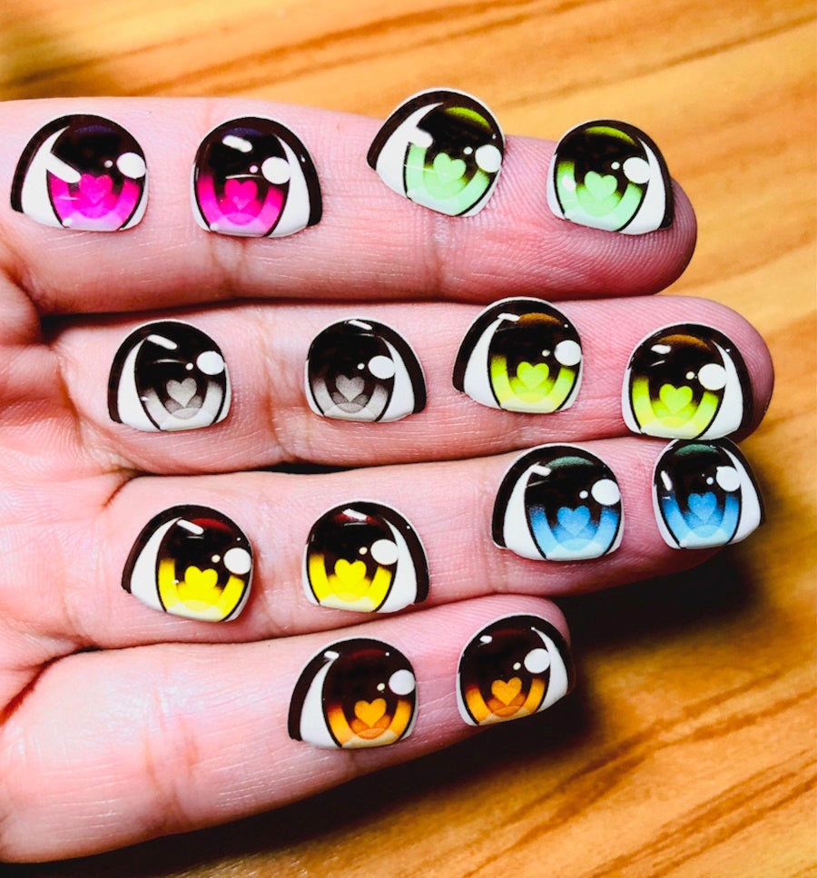 Olhos RESINADOS em vinil ADESIVO RESINADO para uso em artesanato, papelaria, decorações diversas.