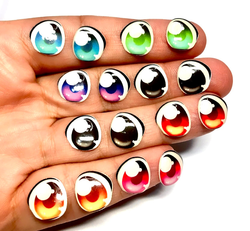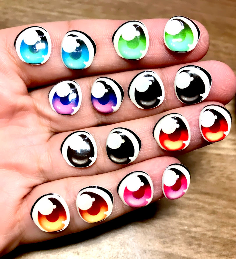 Olhos RESINADOS em vinil ADESIVO RESINADO para uso em artesanato, papelaria, decorações diversas.