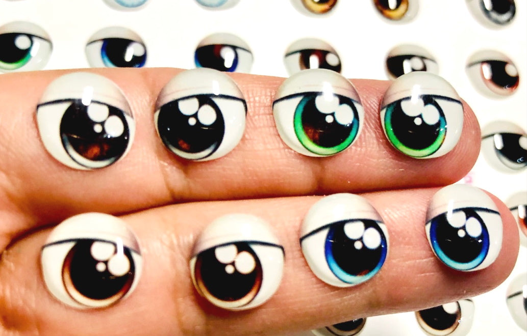 Olhos RESINADOS em vinil ADESIVO RESINADO para uso em artesanato, papelaria, decorações diversas.