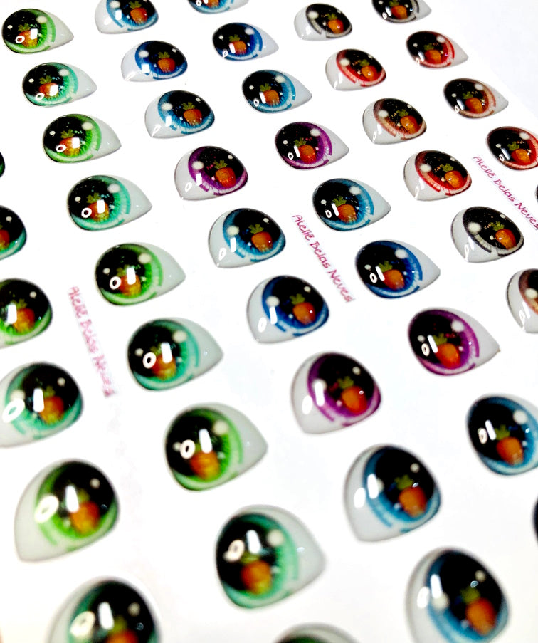Olhos RESINADOS em vinil ADESIVO RESINADO para uso em artesanato, papelaria, decorações diversas.