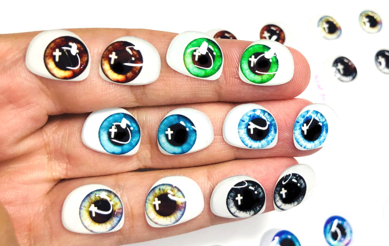 Olhos RESINADOS em vinil ADESIVO RESINADO para uso em artesanato, papelaria, decorações diversas.