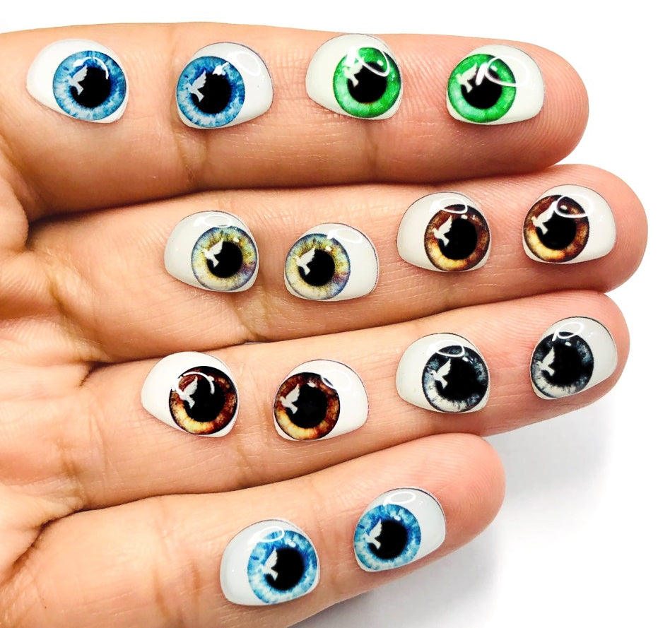 Olhos RESINADOS em vinil ADESIVO RESINADO para uso em artesanato, papelaria, decorações diversas.