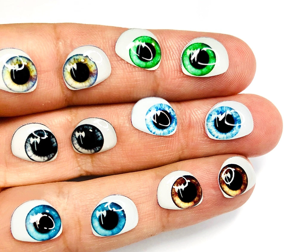Olhos RESINADOS em vinil ADESIVO RESINADO para uso em artesanato, papelaria, decorações diversas.