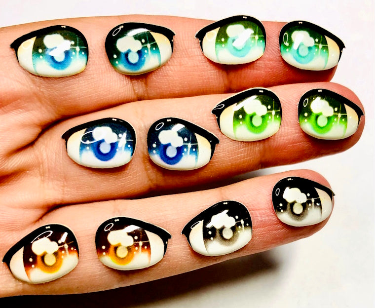 Olhos RESINADOS em vinil ADESIVO RESINADO para uso em artesanato, papelaria, decorações diversas.
