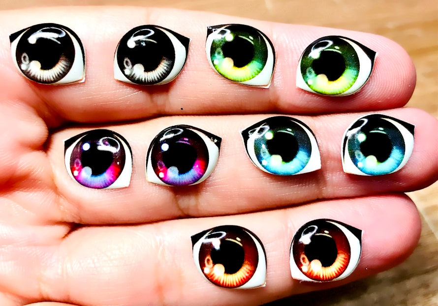 Olhos RESINADOS em vinil ADESIVO RESINADO para uso em artesanato, papelaria, decorações diversas.