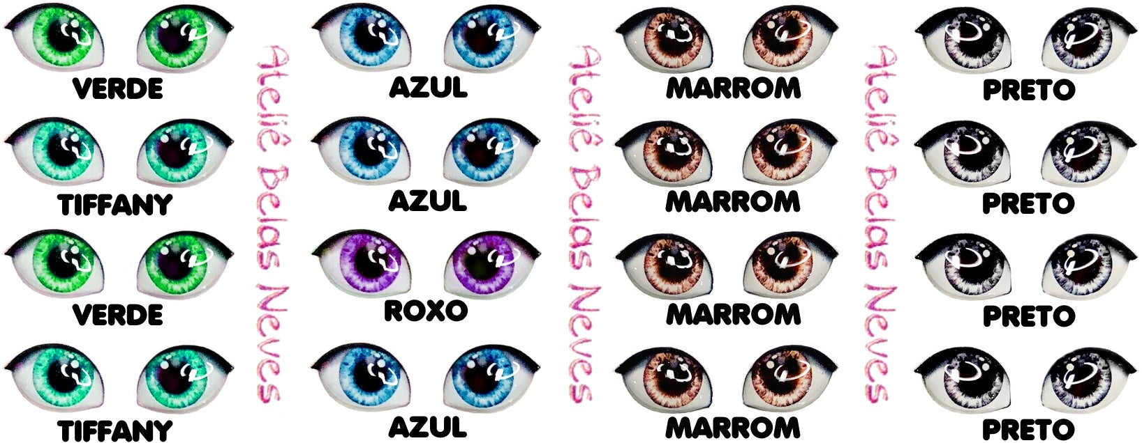 · MICRO – 0,3CM – 84 pares. IDEAL PARA USO EM PERSONALIZADOS, PINGENTES DE EVA E BISCUIT DE ATÉ 2CM. CABEÇAS ENTRE 1 E 1,5CM