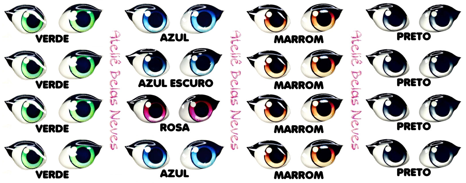 · MICRO – 0,3CM – 84 pares. IDEAL PARA USO EM PERSONALIZADOS, PINGENTES DE EVA E BISCUIT DE ATÉ 2CM. CABEÇAS ENTRE 1 E 1,5CM