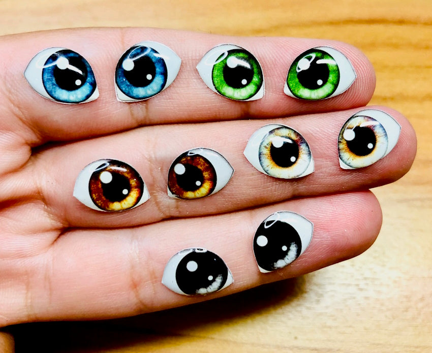 Olhos RESINADOS em vinil ADESIVO RESINADO para uso em artesanato, papelaria, decorações diversas.