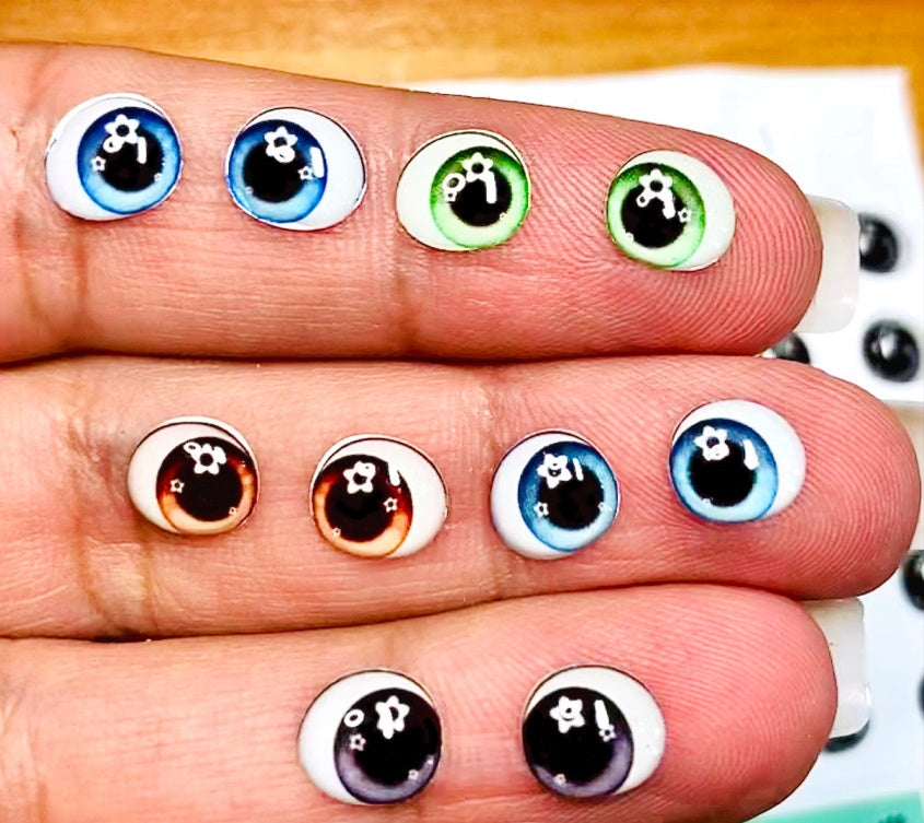 Olhos RESINADOS em vinil ADESIVO RESINADO para uso em artesanato, papelaria, decorações diversas.