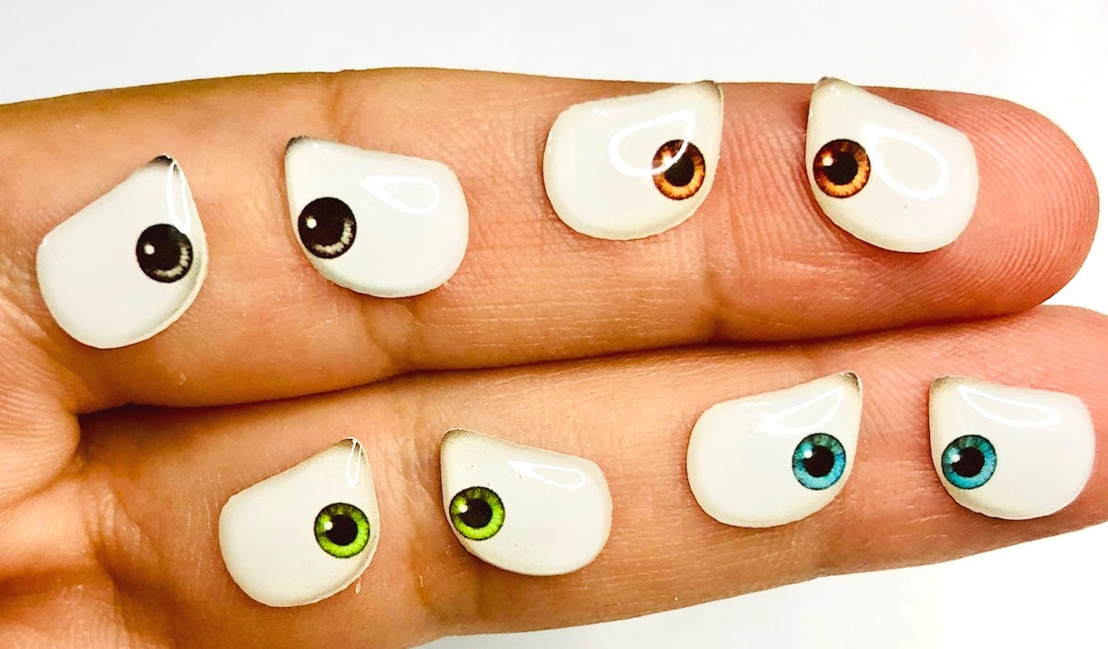 Olhos RESINADOS em vinil ADESIVO RESINADO para uso em artesanato, papelaria, decorações diversas.