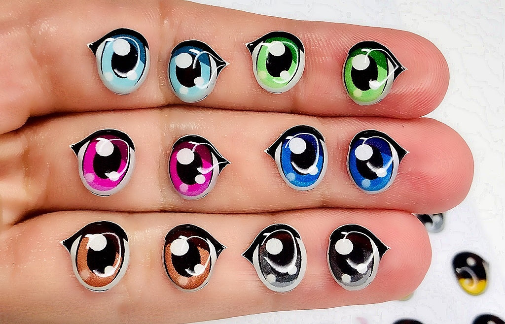 Olhos RESINADOS em vinil ADESIVO RESINADO para uso em artesanato, papelaria, decorações diversas.