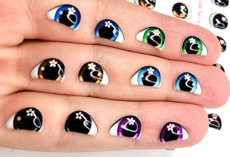 Olhos RESINADOS em vinil ADESIVO RESINADO para uso em artesanato, papelaria, decorações diversas.