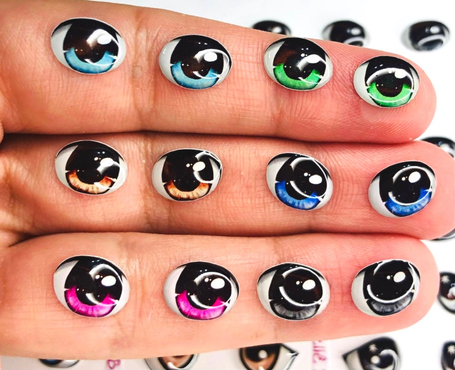 Olhos RESINADOS em vinil ADESIVO RESINADO para uso em artesanato, papelaria, decorações diversas.