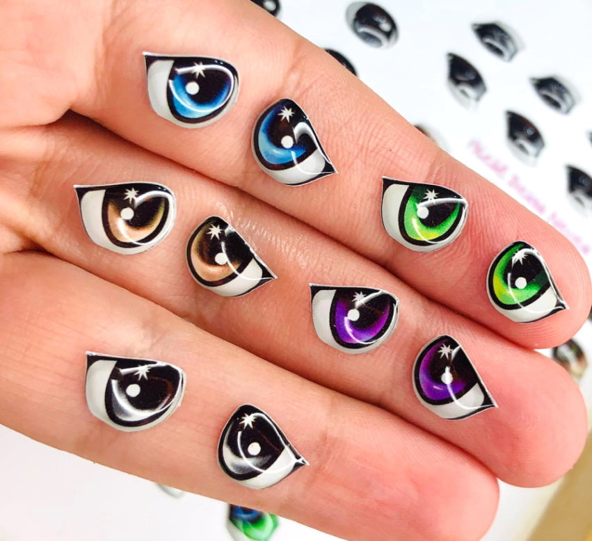 Olhos RESINADOS em vinil ADESIVO RESINADO para uso em artesanato, papelaria, decorações diversas.
