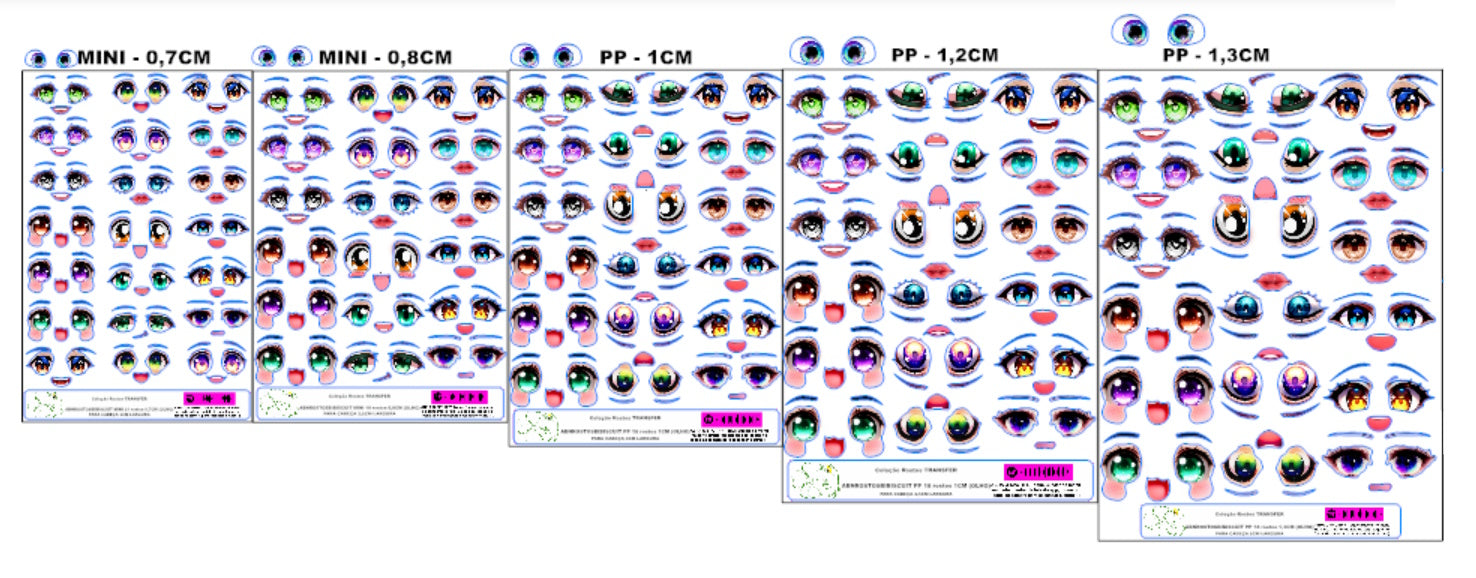 • MINI - 0,8CM – 21 rostos. PARA CABEÇA ENTRE 3 DE 3,5CM LARGURA