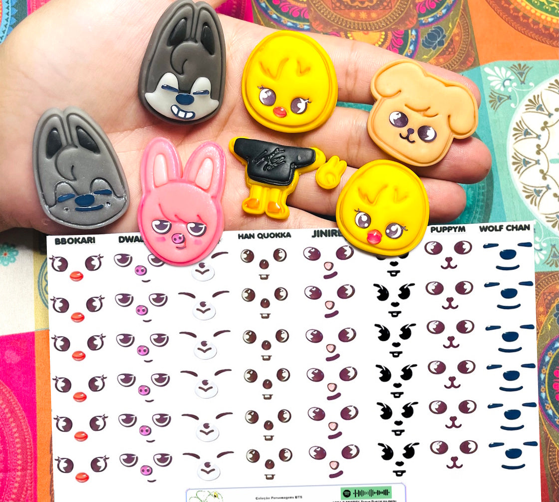 · MINI - 0,7CM – 40 ROSTOS (5 DE CADA PERSONAGEM). IDEAL PARA USO COM CORTADORES DE CABEÇA M. CABEÇAS COM APROXIMADAMENTE 4CM OU 5CM