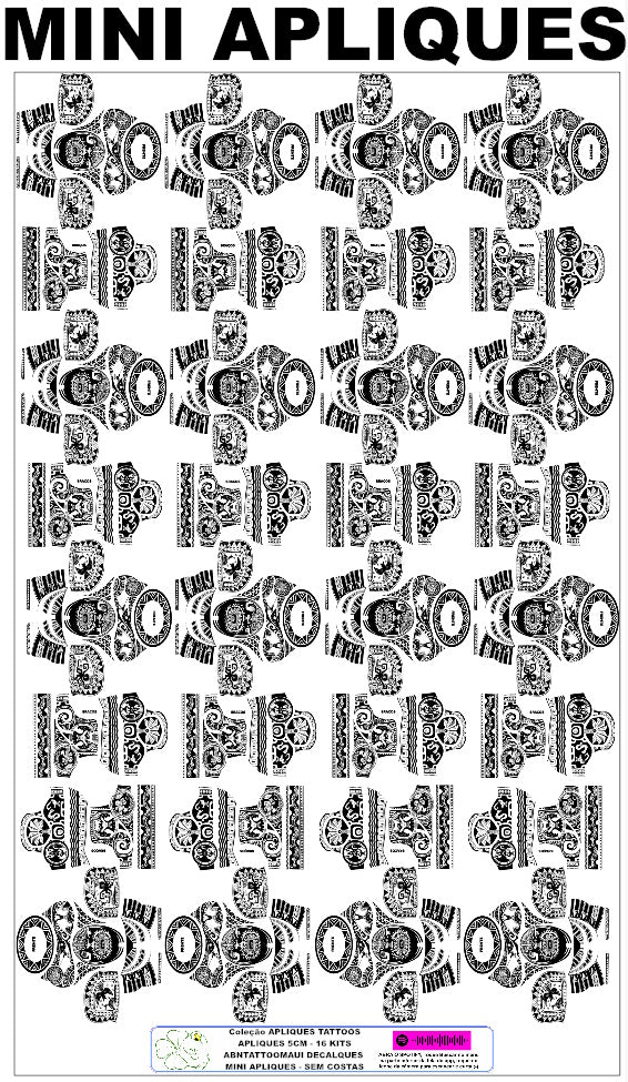 • MINI APLIQUES - PARA 12 BONECOS - RECOMENDADO PARA APLIQUES ENTRE 5 E 7CM COM APENAS A PARTE DA FRENTE (CARTELA NÃO ACOMPANHA TATUAGENS COSTAS PERSONAGEM)